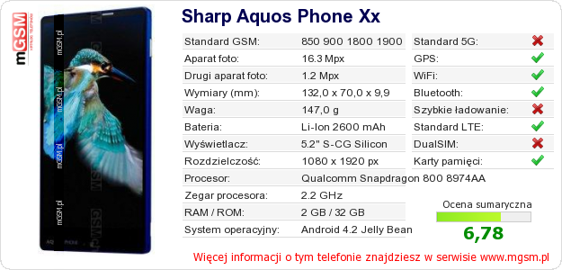 Dane telefonu Sharp Aquos Phone Xx na Twojej stronie
