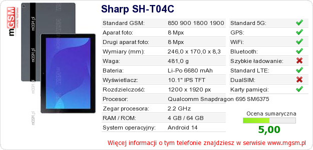 Dane telefonu Sharp SH-T04C na Twojej stronie