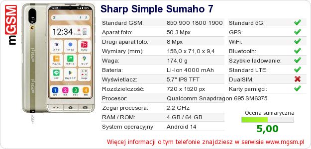 Dane telefonu Sharp Simple Sumaho 7 na Twojej stronie
