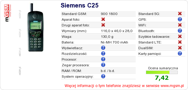 Dane telefonu Siemens C25 na Twojej stronie