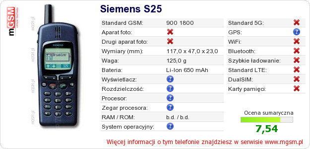 Dane telefonu Siemens S25 na Twojej stronie