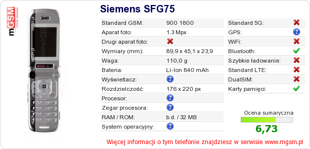 Dane telefonu Siemens SFG75 na Twojej stronie
