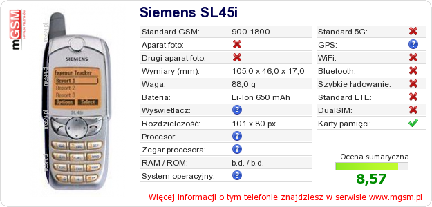Dane telefonu Siemens SL45i na Twojej stronie