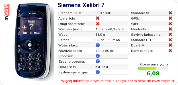 Dane telefonu Siemens Xelibri 7 na Twojej stronie
