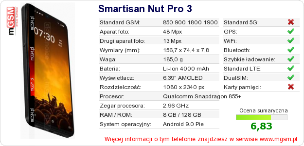 Dane telefonu Smartisan Nut Pro 3 na Twojej stronie
