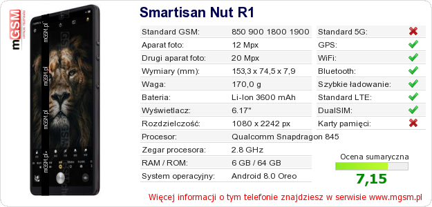 Dane telefonu Smartisan Nut R1 na Twojej stronie