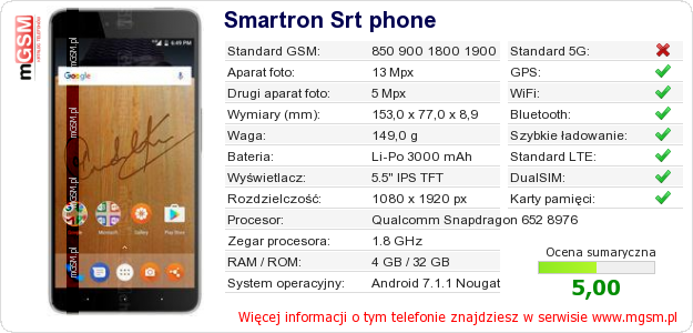 Dane telefonu Smartron Srt phone na Twojej stronie