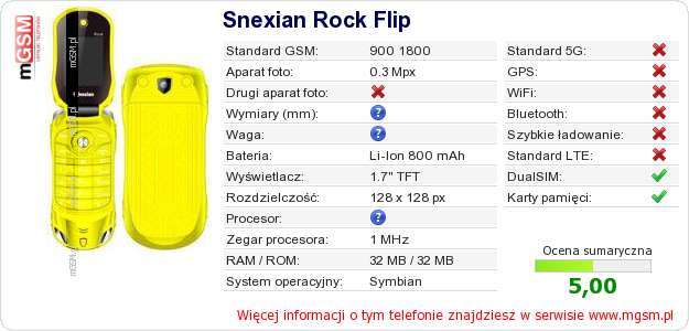 Dane telefonu Snexian Rock Flip na Twojej stronie