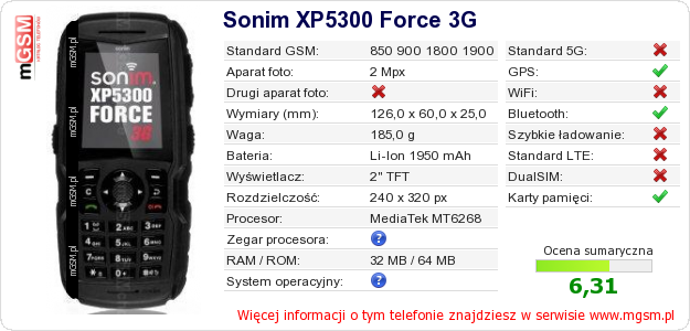 Dane telefonu Sonim XP5300 Force 3G na Twojej stronie