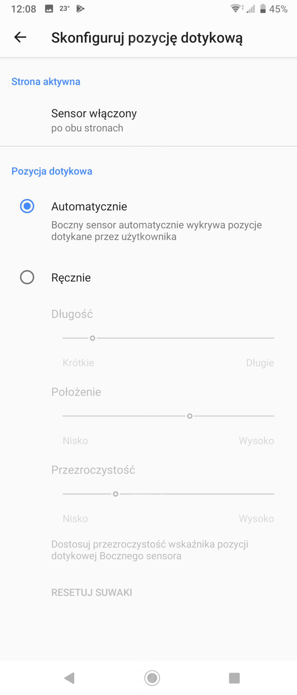 Osobliwością interfejsu Xperii jest boczny sensor, stanowiący moim zdaniem ulepszone połączenie podobnych rozwiązań HTC i Samsunga. W Xperii uruchamiamy go stuknięciem w brzeg ekranu, na ustalonej przez nas wysokości.
