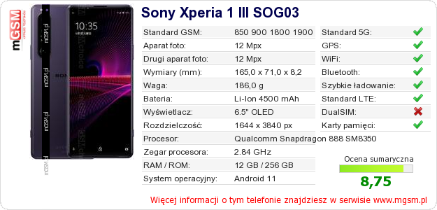 Dane telefonu Sony Xperia 1 III SOG03 na Twojej stronie