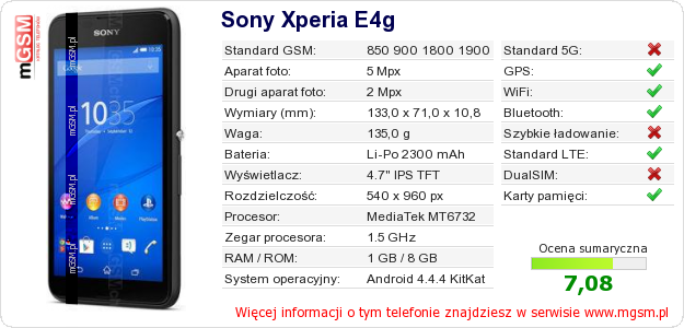 Dane telefonu Sony Xperia E4g na Twojej stronie