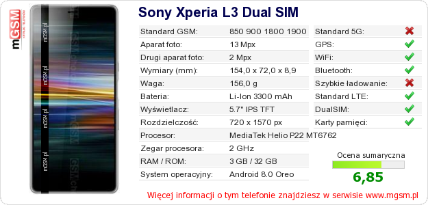 Dane telefonu Sony Xperia L3 Dual SIM na Twojej stronie