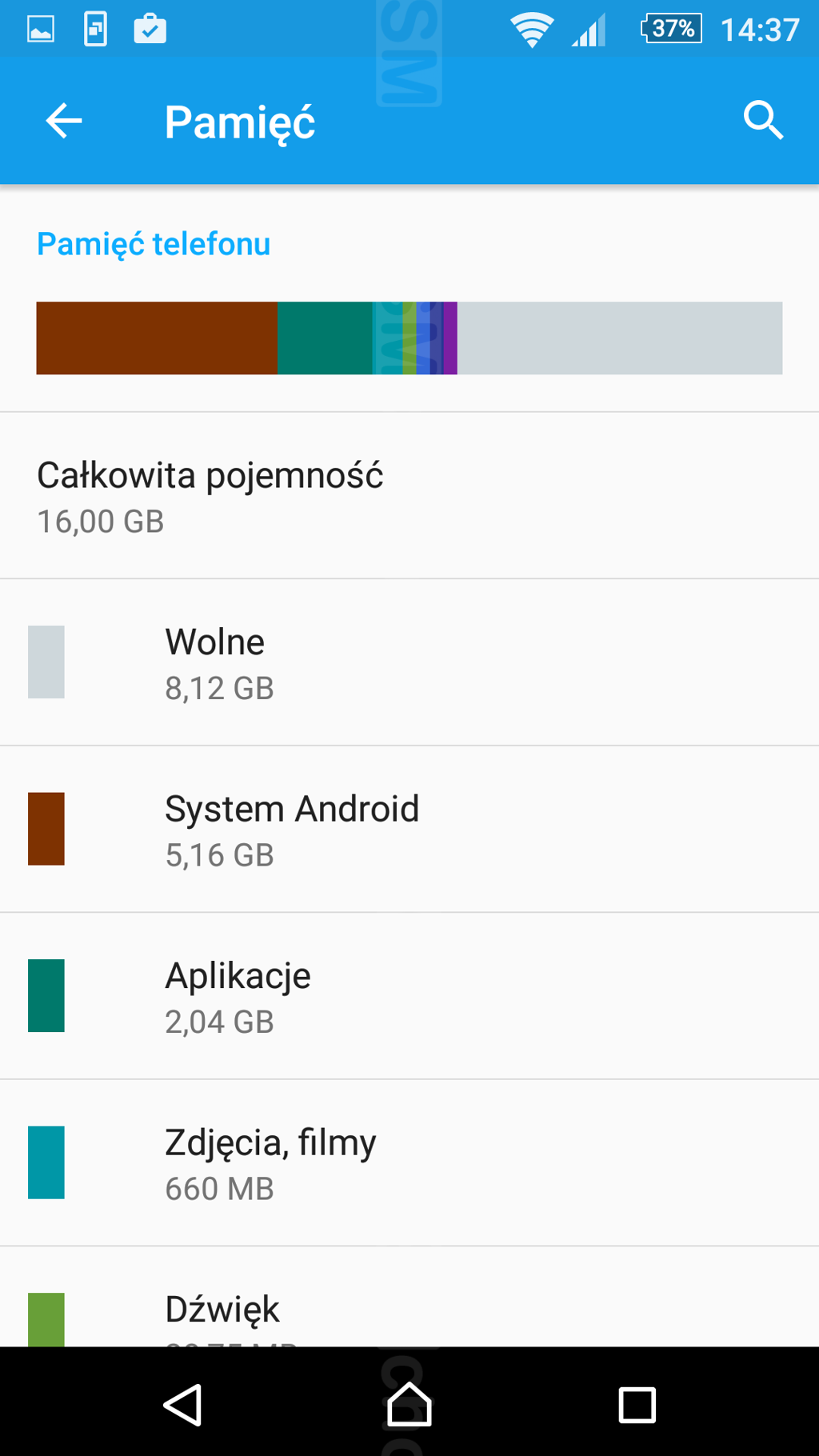 Sony zawsze wiele miejsca w pamięci zaśmiecało nadmiarem autorskich, preinstalowanych aplikacji. Tak też jest w przypadku modelu Xperia M5. Z 16 GB wbudowanej pamięci, świeżo po zresetowaniu smartfonu do ustawień fabrycznych, dla użytkownika pozostaje zaledwie połowa. I niestety niewiele z nich będzie możliwych do odinstalowania. Nie pozbędziemy się na przykład AR Effects, Lounge, What's New, Smart Connect czy Movie Creator. Nie ma co opisywać poszczególnych aplikacji - zestaw jest podobny w każdej Xperii.