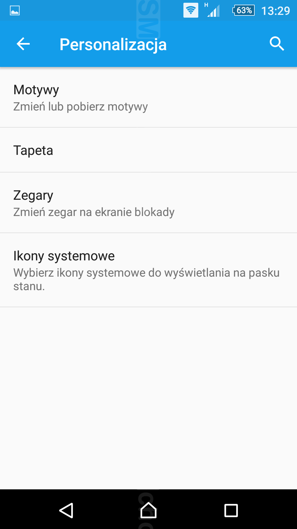 Personalizacja obejmuje zmianę tapet (statyczne i animowane), dodawanie widgetów i zmianę motywów. Użytkownik może zdecydować, które ikony systemowe będą wyświetlane na pasku stanu. Do zagospodarowania mamy 5 ekranów głównych, z których każdy może zostać ustawiony jako ekran główny. Maksymalnie może być siedem ekranów. Dodatkowo na ekranie blokady można zmienić widget zegara, udostępniono też ikony szybkiego dostępu do dialera i aparatu. Można zabezpieczyć dostęp do danych przed niepowołanymi osobami przez wzór, twarz, PIN czy hasło - niestety M5 nie ma czytnika linii papilarnych. Dodatkowym zabezpieczeniem jest funkcja Smart Lock, która umożliwia pozostawienie odblokowanego urządzenia w określonych lokalizacjach, przy wykryciu kontaktu z ciałem czy na podstawie twarzy lub głosu użytkownika.