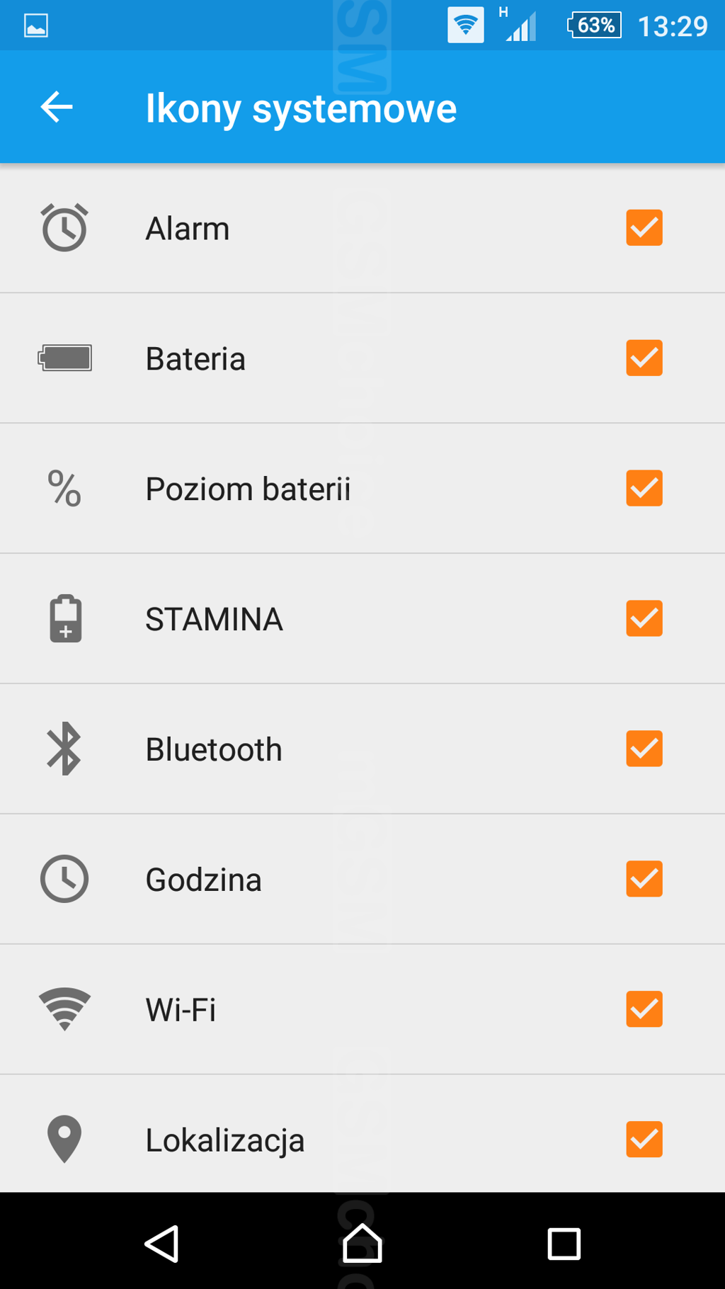 Pasek powiadomień jest połączony z paskiem skrótów. Użytkownik ma wpływ na kolejność i dobór ikon, które będą widoczne na pasku, ewentualnie może pozostawić ich aranżację systemowi. Obecne są tu też tzw. drobne aplikacje, uruchamiane w oknach i "wiszące" na pulpicie w postaci małych ikon, gdy nie są potrzebne - ale mają być pod ręką. Do wyboru jest też standardowy ekran główny Xperia oraz jego uproszczona wersja, nazwana "Prosty ekran główny". Dłuższe wciśnięcie wyłącznika wywołuje ekran umożliwiający wyłączenie lub reset urządzenia, ale także dostęp do widgetu do nagrywania z ekranu.