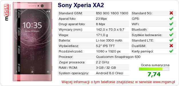 Dane telefonu Sony Xperia XA2 na Twojej stronie