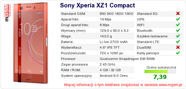 Dane telefonu Sony Xperia XZ1 Compact na Twojej stronie