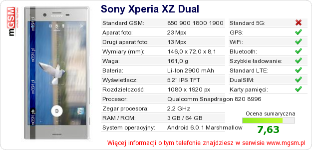 Dane telefonu Sony Xperia XZ Dual na Twojej stronie