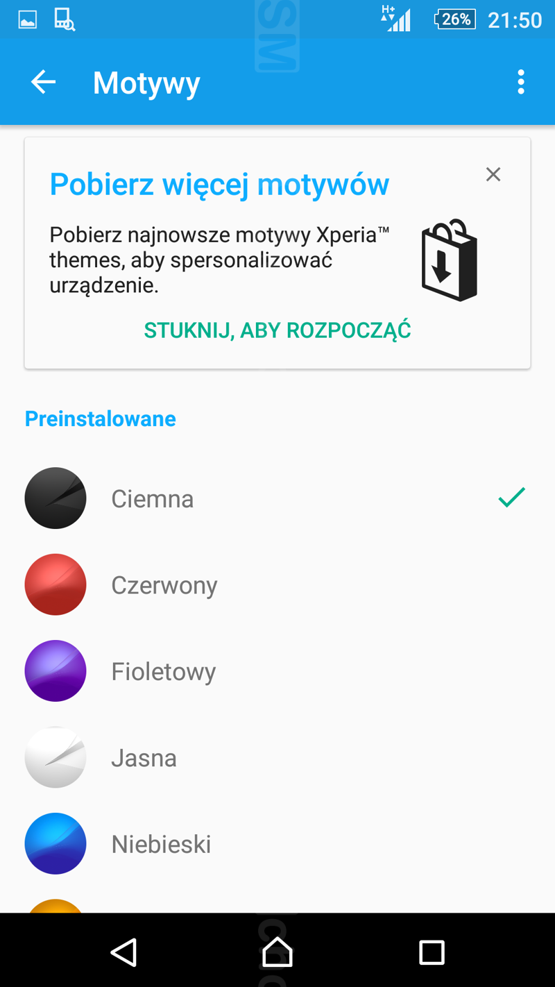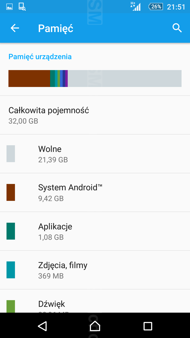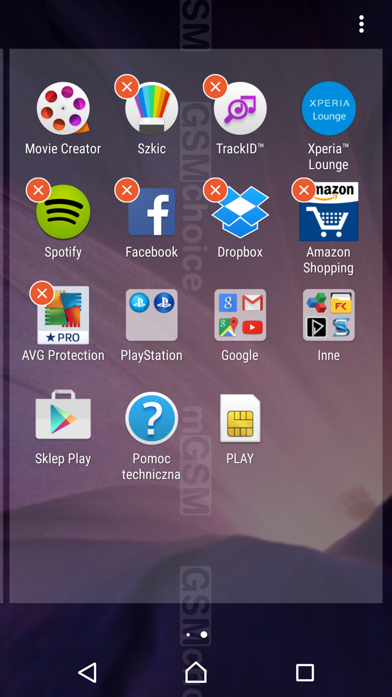 Tradycyjnie sporo miejsca zajmują tu preinstalowane aplikacje, firmowane przez Sony (np. What's New, Lifelog, Szkic, Xperia Lounge, PSN, Smart Connect), a także aplikacje zewnętrznych producentów (np. Office Suite, Spotify, Facebook, Dropbox, AVG Protection). Część z nich da się bez problemu odinstalować. Towarzyszy im standardowy zestaw usług Google'a, multimedialne odtwarzacze producenta i garść aplikacji użytkowych.