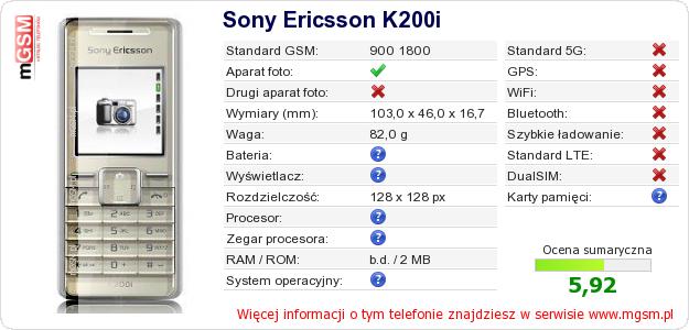 Dane telefonu Sony Ericsson K200i na Twojej stronie