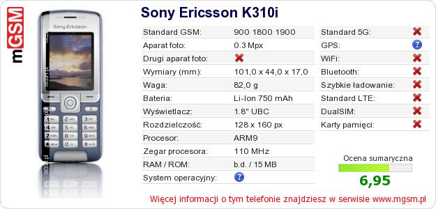 Dane telefonu Sony Ericsson K310i na Twojej stronie