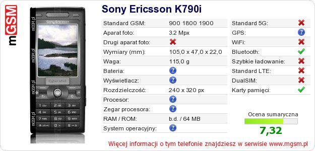 Dane telefonu Sony Ericsson K790i na Twojej stronie