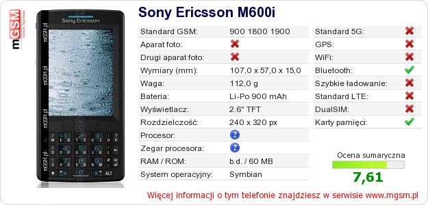 Dane telefonu Sony Ericsson M600i na Twojej stronie