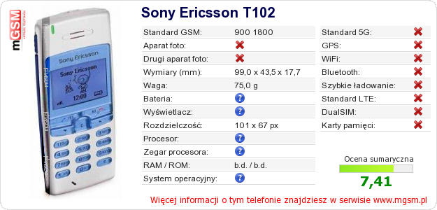 Dane telefonu Sony Ericsson T102 na Twojej stronie