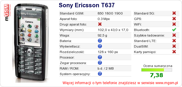 Dane telefonu Sony Ericsson T637 na Twojej stronie
