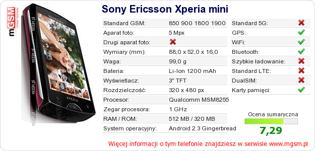 Dane telefonu Sony Ericsson Xperia mini na Twojej stronie
