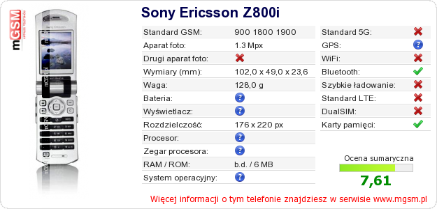 Dane telefonu Sony Ericsson Z800i na Twojej stronie