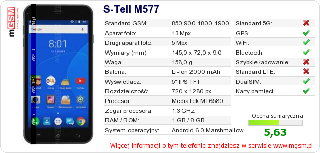 Dane telefonu S-Tell M577 na Twojej stronie