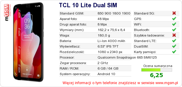 Dane telefonu TCL 10 Lite Dual SIM na Twojej stronie