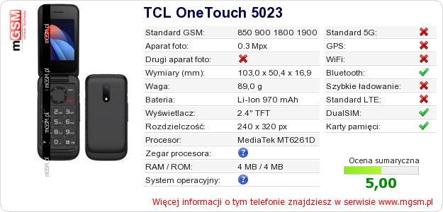 Dane telefonu TCL OneTouch 5023 na Twojej stronie