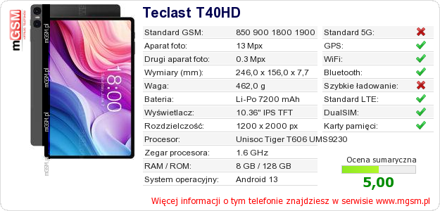 Dane telefonu Teclast T40HD na Twojej stronie