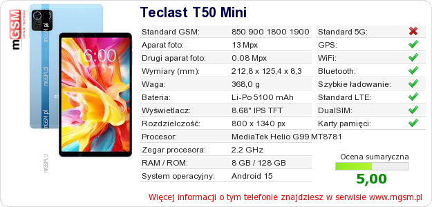 Dane telefonu Teclast T50 Mini na Twojej stronie