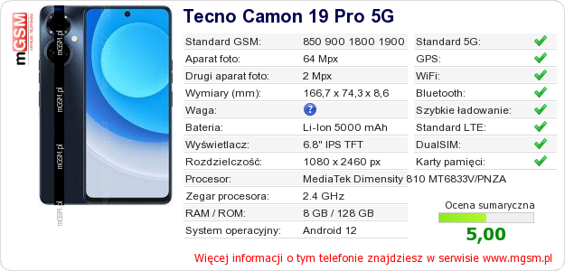 Dane telefonu Tecno Camon 19 Pro 5G na Twojej stronie