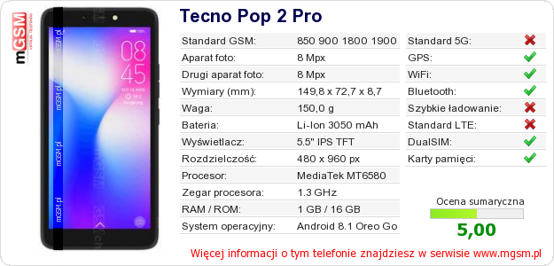 Dane telefonu Tecno Pop 2 Pro na Twojej stronie