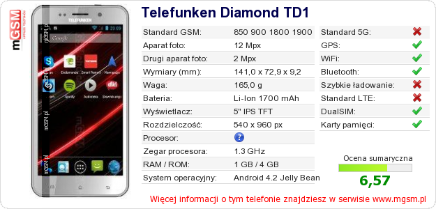 Dane telefonu Telefunken Diamond TD1 na Twojej stronie