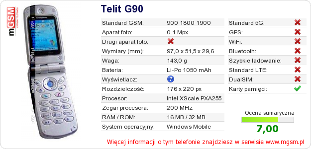 Dane telefonu Telit G90 na Twojej stronie