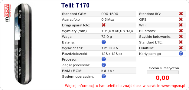 Dane telefonu Telit T170 na Twojej stronie