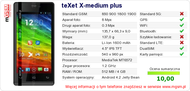 Dane telefonu teXet X-medium plus na Twojej stronie