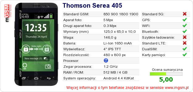 Dane telefonu Thomson Serea 405 na Twojej stronie