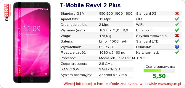 Dane telefonu T-Mobile Revvl 2 Plus na Twojej stronie
