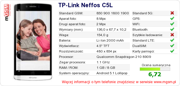 Dane telefonu TP-Link Neffos C5L na Twojej stronie