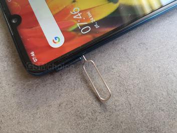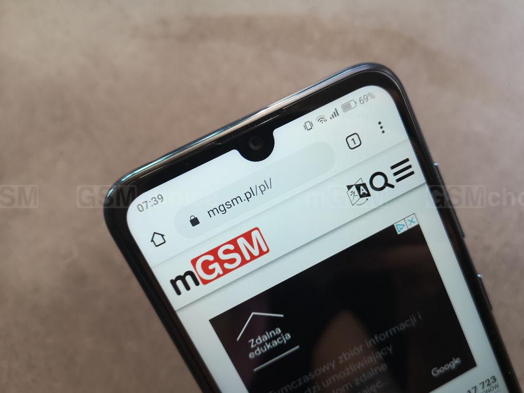 Wokół ekranu zauważymy dość szerokie ramki - ale przecież to smartfon wyceniony na 599 złotych, a nie na kilka tysięcy, więc bezramkowości i tak się nie spodziewaliśmy. Sam ekran zajmuje 87% powierzchni frontowego panelu. Na górnej ramce zauważymy, oprócz wspomnianego już wcięcia z frontowym aparatem, szczelinę głośnika, czujniki oraz malutką diodę powiadomień. Dolna ramka mocno rzuca się w oczy, jest szeroka i umieszczono na niej logo marki. Warto dodać, że frontowy aparat odpowiada za funkcję rozpoznawania twarzy, służącą jako dodatkowe biometryczne zabezpieczenie telefonu. Nie jest to szczególnie bezpieczna metoda, w teorii można ją oszukać przy pomocy zdjęcia, nie radzi sobie też w ciemności ani gdy mamy na sobie dodatkowe elementy garderoby (np. maskę ochronną albo okulary). Ale czasem się przydaje.