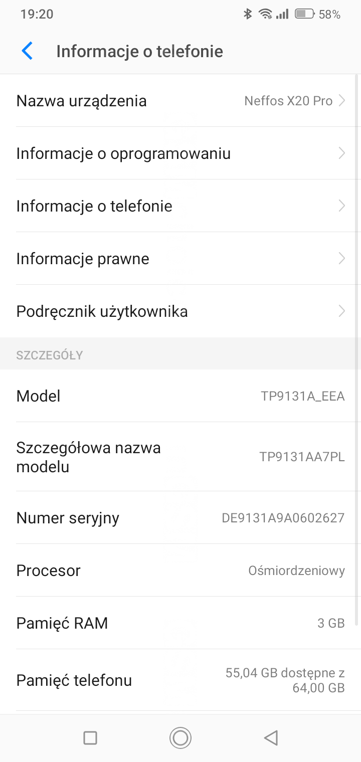 Smartfon wyposażony jest w podstawowy zestaw modułów, obejmujący Wi-Fi w standardzie 802.11a/b/g/n/ac, obejmujący zarówno pasmo 2,4 GHz, jak i 5 GHz, do tego Bluetooth 5.0 oraz system nawigacji uwzględniający GPS, BeiDou, Glonass i Galileo. Wszystkie one spisywały się poprawnie przez cały okres, w którym dane było mi używać telefonu. Zabrakło NFC, które zresztą nie jest popularnym elementem wyposażenia w smartfonach z niższej półki cenowej - nie skorzystacie więc z płatności zbliżeniowych. Oprócz tego Neffos X20 Pro oferuje zestaw podstawowych czujników, wśród nich kompas, akcelerometr, czujnik oświetlenia i czujnik zbliżeniowy - zabrakło natomiast żyroskopu. Z fizycznych portów mamy tu uniwersalne gniazdo słuchawkowe, port microUSB do ładowania urządzenia i transferu danych, skaner linii papilarnych na tylnym panelu, a także obsługę dwóch kart i microSD. Smartfon pracuje w sieciach 4G LTE, 3G WCDMA oraz 2G GSM.