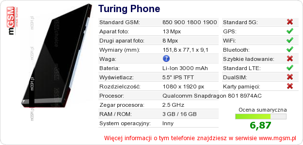 Dane telefonu Turing Phone na Twojej stronie