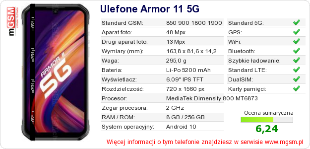 Dane telefonu Ulefone Armor 11 5G na Twojej stronie